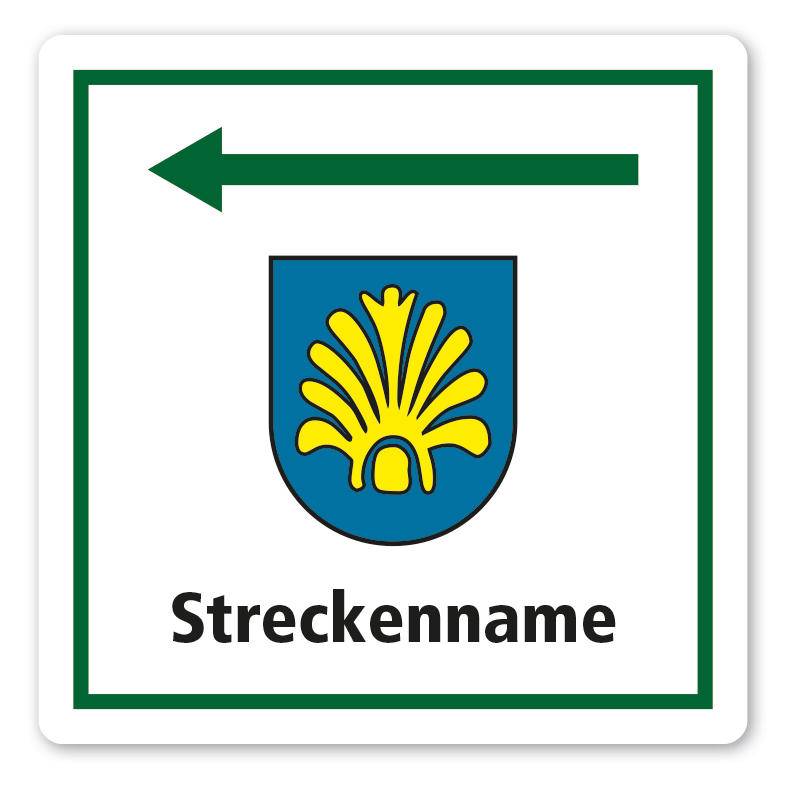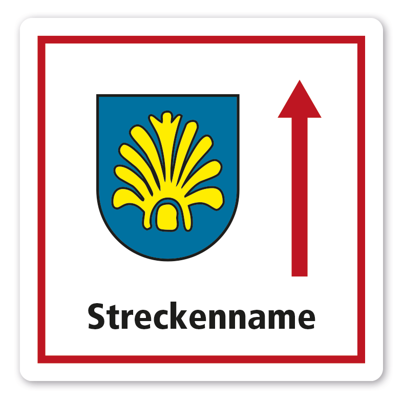 Individuelle Streckenschilder - Rad- und Wanderwege - mit Streckennamen, Richtungspfeilen, Logo oder Wappen nach Absprache – quadratisch