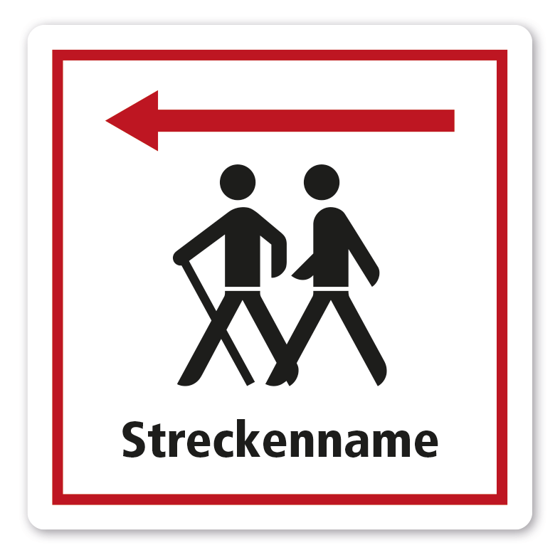 Merkmale dieser individuellen Streckenschilder - Rad- und Wanderwege - mit Streckennamen, Richtungspfeilen, Logo oder Wappen nach Absprache – quadratisch – HW-TS-285: