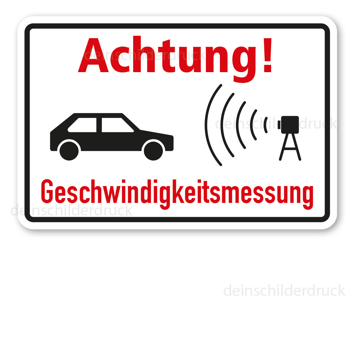 Merkmale des Verkehrsschildes Achtung - Geschwindigkeitsmessung - mit Symbol – HW-TS-09: