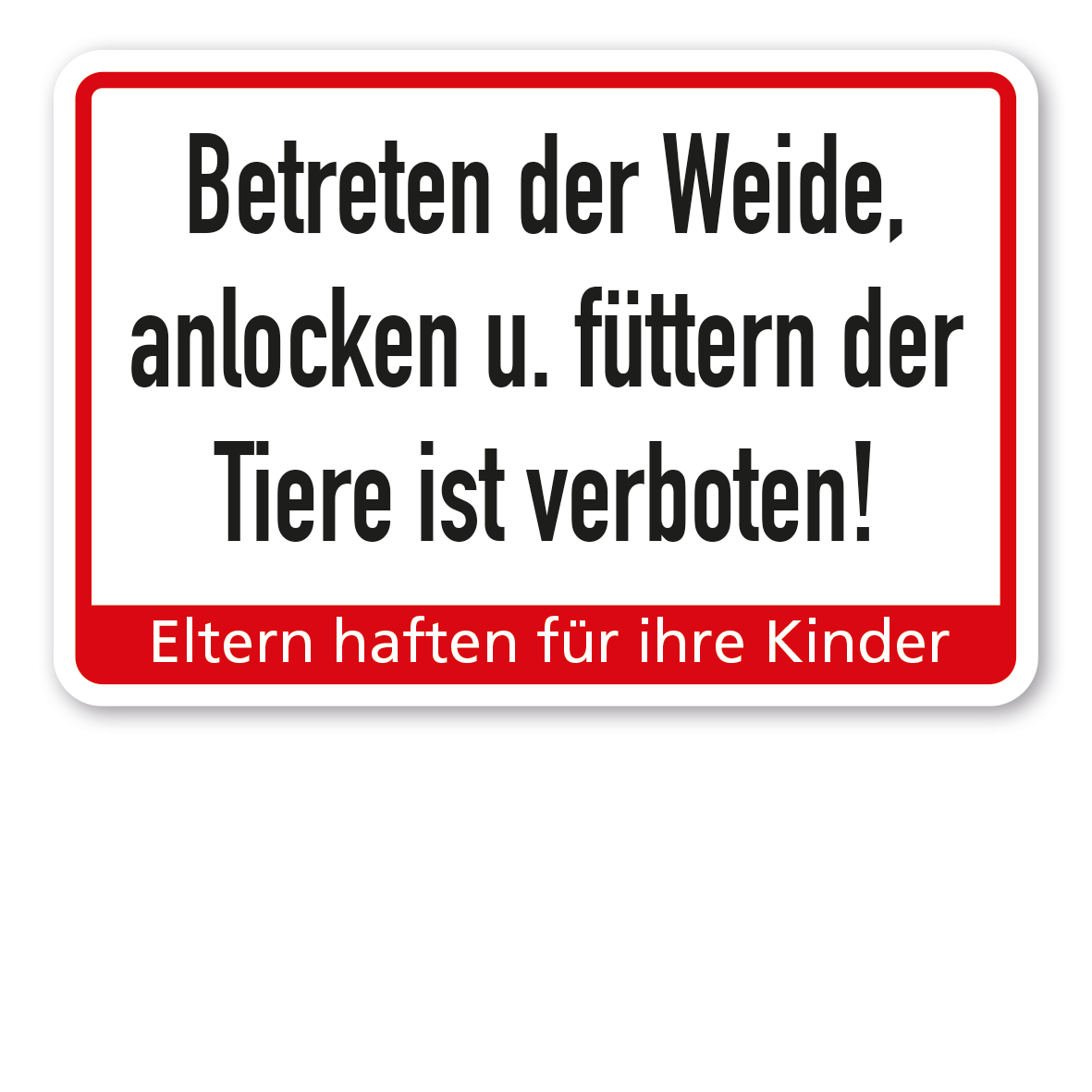 Produktinformationen "Weideschild Betreten der Weide, anlocken u. füttern der Tiere ist verboten - Eltern haften für ihre Kinder"