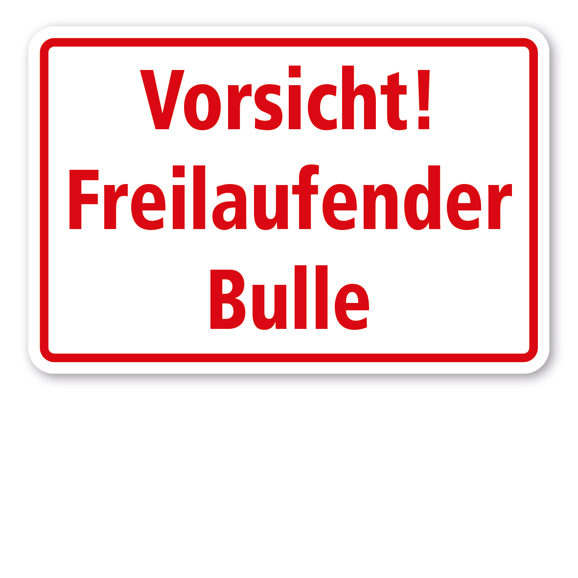 Hochwertiges Weideschild / Hinweisschild Vorsicht! Freilaufender Bulle als Verbotsschild für Tierweiden. Weideschilder sind Schilder, die in Form von Verboten, Geboten oder Warnungen Menschen informieren, wie sie sich an Weiden und Tiergehegen verhalten sollen. So klären Weideschilder Unwissende z.B. auf, dass das Füttern der Weidetiere, so gut es auch gemeint ist, aufgrund gesundheitlicher Risiken nicht erwünscht ist, informieren aber auch über möglich Gefahren, die beim unbefugten Betreten der Weide gegeben sind – z.B. auf einer Bullenweide. Unsere Weideschilder werden nicht aus Kunststoff gefertigt, der nur für einen max. mittelfristigen Einsatz geeignet ist, sondern aus 2 mm Hartaluminium für eine sehr lange Einsatzdauer, auch bei extremen Witterungen.