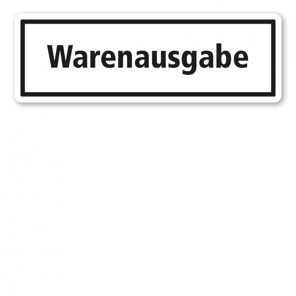 Textschild Warenausgabe. Textschilder sind Hinweisschilder mit reinen Textinhalten in zahlreichen Größen und Ausführungen. Sie können als Standardschilder für diverse Themenbereiche oder in individuellen Ausführungen für eine bedarfsbezogene Beschilderung erworben werden.