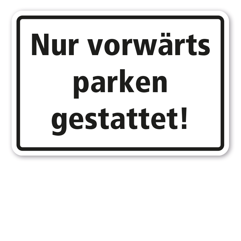 Schild Nur vorwärts parken gestattet. Dieses Schild ist in zahlreichen Größen erhältlich, sehr gut wahrnehmbar, absolut wetterfest und somit für jeden Einsatzzweck geeignet.