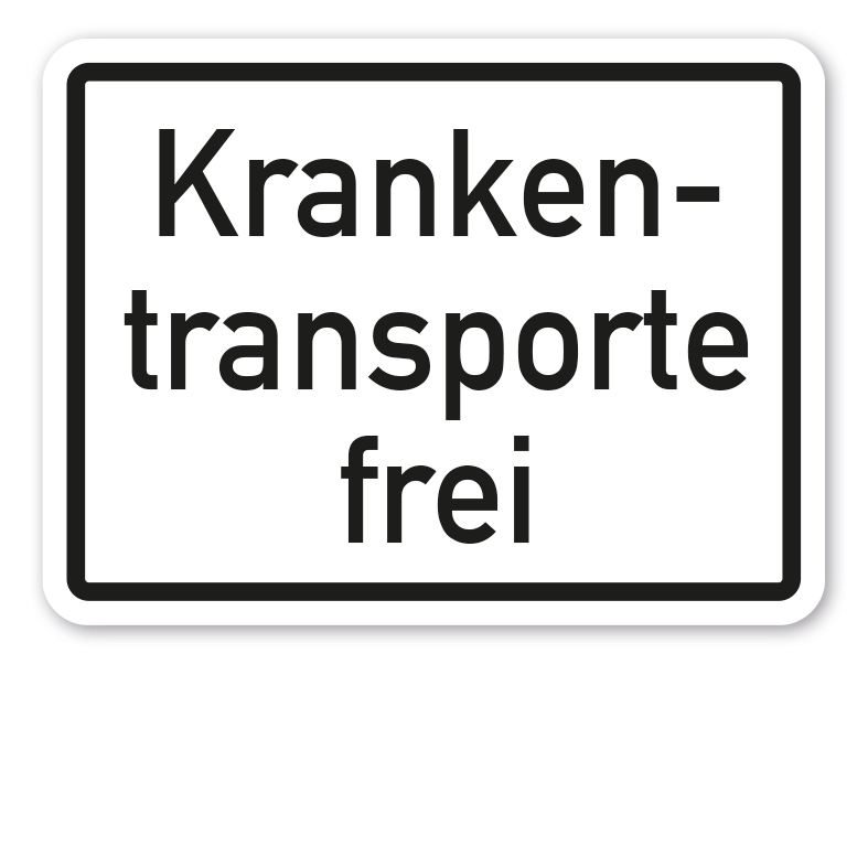 Praxisbewährtes Zusatzzeichen für Verkehrsschilder oder Parkplatzschilder – Krankentransporte frei - Verkehrsschild. Zusatzzeichen werden in der Regel mit Verkehrsschildern kombiniert und konkretisieren die bildlichen Aussagen dieser in Form von reinen Texthinweisen, Texthinweisen mit weiteren Symbolen oder nur Symbolen. Zusatzzeichen oder Zusatzverkehrsschilder sind als Standardschilder nach StVO erhältlich oder als Sonderschilder mit individuellen Textinhalten oder Symbolen für die bedarfsbezogene Nutzung.