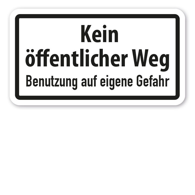 Praxisbewährtes Zusatzzeichen für Verkehrsschilder Kein öffentlicher Weg - Benutzung auf eigene Gefahr VZ-78. Zusatzzeichen werden in der Regel mit Verkehrsschildern kombiniert und konkretisieren die bildlichen Aussagen dieser in Form von reinen Texthinweisen, Texthinweisen mit weiteren Symbolen oder nur Symbolen. Zusatzzeichen oder Zusatzverkehrsschilder sind als Standardschilder nach StVO erhältlich oder als Sonderschilder mit individuellen Textinhalten oder Symbolen für die bedarfsbezogene Nutzung.