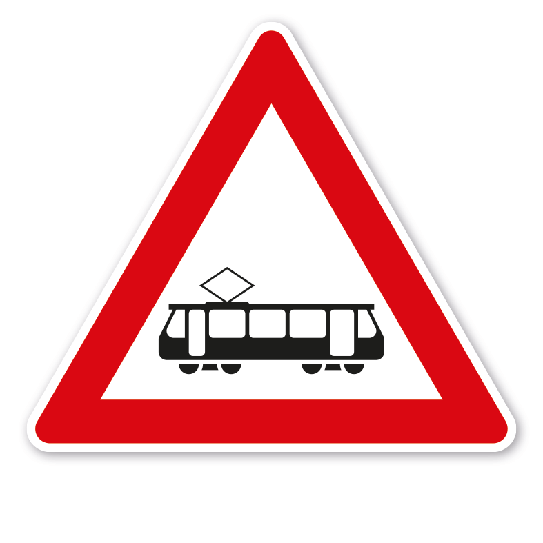 Verkehrsschild / Gefahrenschild Achtung Straßenbahn. Gefahrenschilder nach StVO und praxisbewährte Schilder stellen im Straßenverkehr eine Anordnung dar, die am Standort des Schildes oder ab diesem zu befolgen ist. Dieses Verkehrszeichen kann als Einzelschild oder in Kombination mit Zusatzzeichen, die die Symbolik näher erläutern, eingesetzt werden.