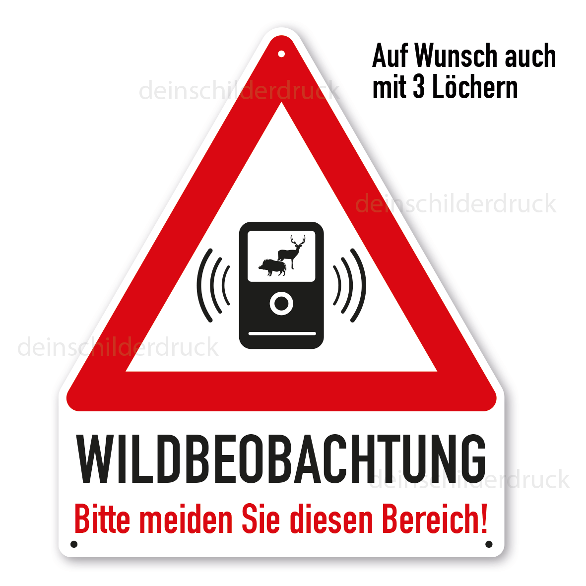Merkmale des Warnschildes Achtung Wildbeobachtung - Bitte meiden Sie diesen Bereich - mit Verkehrszeichen Wildkamera – VZ-K-123:
