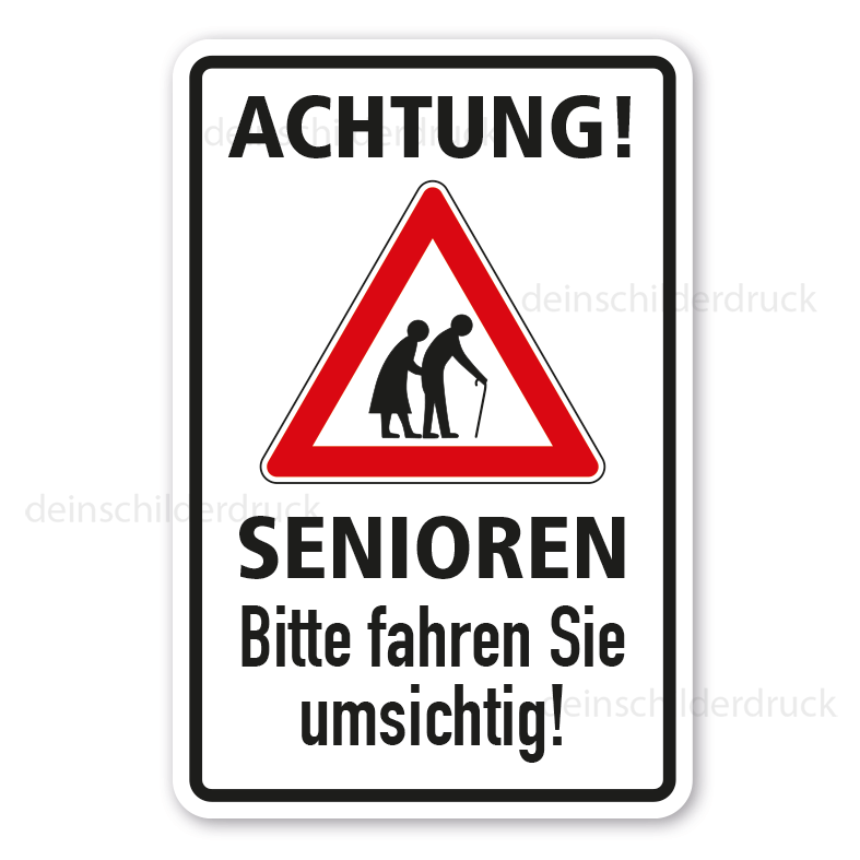 Merkmale des Verkehrsschildes Achtung Senioren. Bitte fahren Sie umsichtig - Kombi – VZ-K-138: