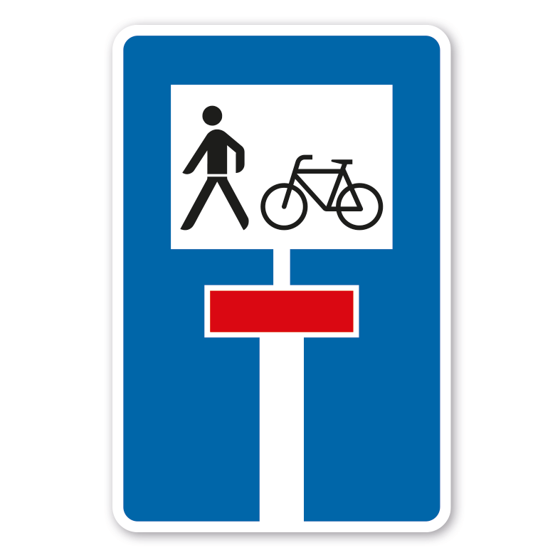 Merkmale des Schildes / Kombinationsschildes Für Radverkehr und Fußgänger durchlässige Sackgasse - Verkehrsschild VZ-357-50: