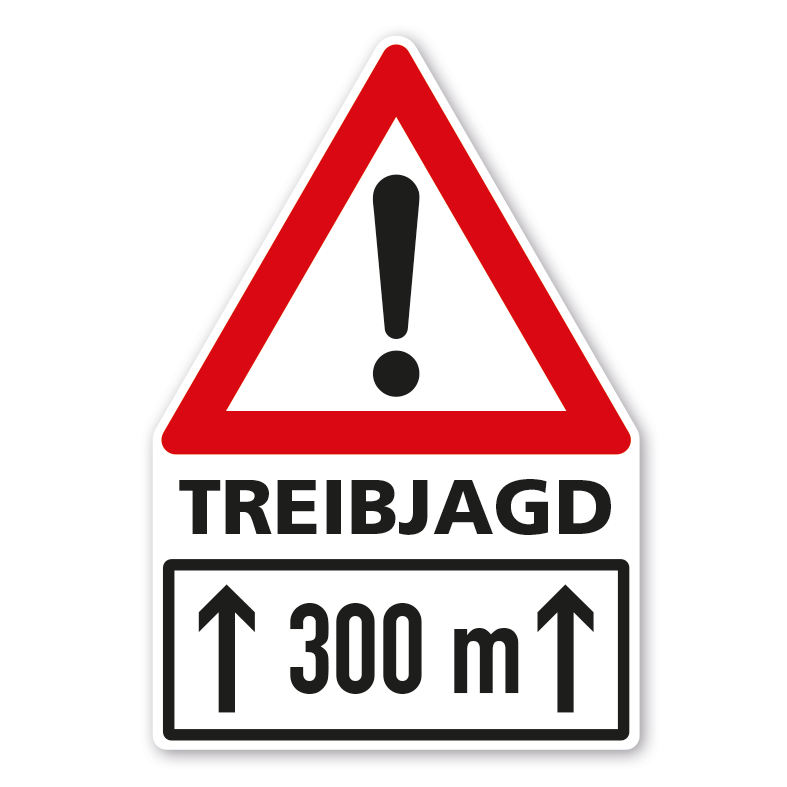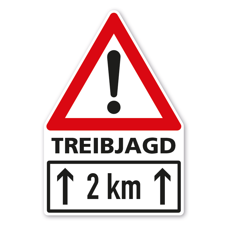 Warnschild Achtung Treibjagd - mit individueller Streckenangabe