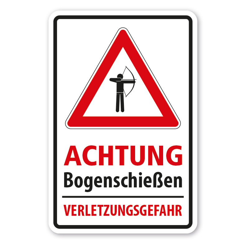 Verkehrsschild Achtung Bogenschießen - Verletzungsgefahr. In diversen Größen erhältlich.