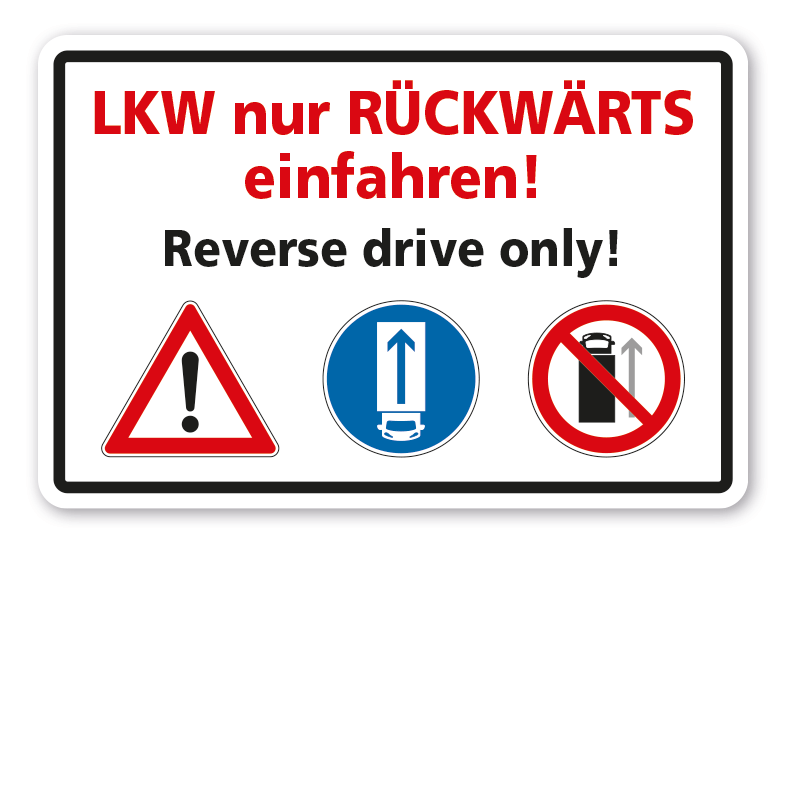 Betriebsschild LKW nur rückwärts einfahren - Reverse drive only