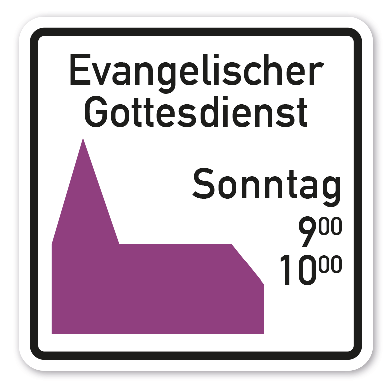 Verkehrsschild Kirchenschild Evangelischer Gottesdienst – Standardschild oder mit individuellen Zeitangaben.