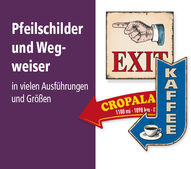 Die Kategorie Dekoschilder / Fun-Schilder beinhaltet humorvolle und originelle Schilder für Menschen, die das Lachen noch nicht verlernt haben und sich den Sinn für die kleinen Dinge des Lebens bewahrt haben. Lassen Sie sich von unseren Retro- und Vintage-Schildern begeistern, die zahlreich und in vielen Themen verfügbar sind – als Dekorationsschild für einen Hauch Nostalgie zu Hause oder als lustiges Fun-Schild oder Spruchschild zum verschenken, um anderen eine Freude zu bereiten. Vielleicht sagen Ihnen aber auch unsere Crossing-Warnschilder zu, die in vielen Ausführungen erhältlich sind – auch mit Ihren Inhalten. In dieser Kategorie führen wir internationale und australische Warnschilder.