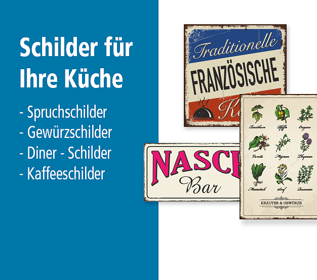 Bitte beachten Sie, dass die Alters- und Abnutzungserscheinungen auf unseren Retro- und Vintage-Schildern nur aufgedruckt sind. Alle Schilder werden bestellbezogen produziert und verlassen neuwertig unser Haus.