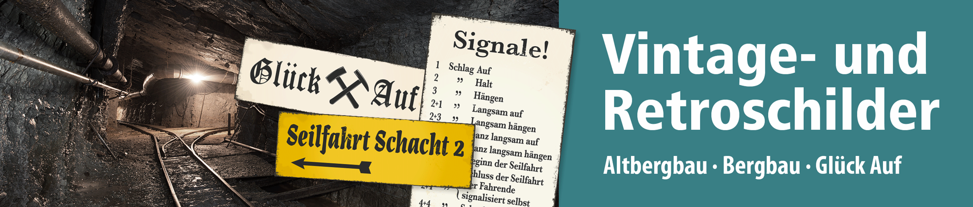 In dieser Kategorie finden Sie Bergbauschilder, die überwiegend alten Schildern und Hinweisen aus dem Altbergbau nachempfunden sind, die zum Teil aus Holz mit handgemalten Inhalten gefertigt wurden. Unsere Schilder rund um den Bergbau verstehen wir als eine Hommage an diesen traditionsreichen Berufsstand, der leider zunehmend an Bedeutung verliert, und bieten sie daher in diversen Ausführungen und Größen in Retro-Ausführung zur Dekorationszwecken oder als eine originelle Geschenkidee für Angehörige und Fans des Bergbaus. Unsere Bergbauschilder stellen eine kleine Auswahl der damals zum Einsatz gekommen Warnungen und Hinweisen dar, beinhalten aber auch Schilder mit dem traditionellen Gruß Glückauf, dem bekannten Bergbaulogo oder der Darstellung eines Förderturms.