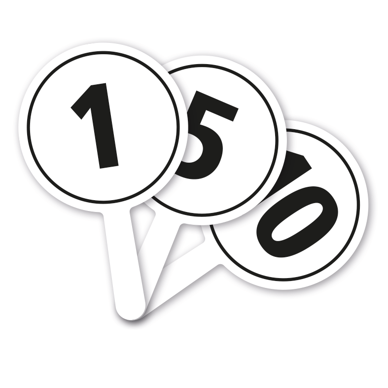 Jury-Handschilder mit Bewertungen 1 - 10 mit einem praktischen Handgriff zum Hochhalten. Bewerten Sie sportliche Leistungen ganz einfach, z.B. das Tanzen. Unsere formgefrästen Bewertungsschilder sind aufgrund neuem Material ausgesprochen stabil und langlebig.