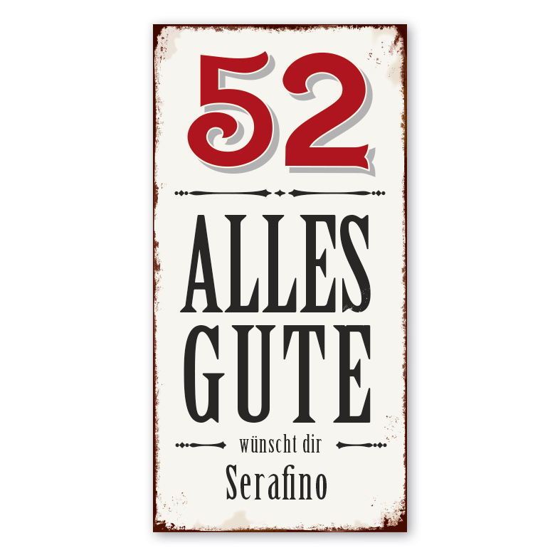Merkmale des Retro Geburtstagsschildes Alles Gute wünschen dir – mit Ihrer Altersangabe und Ihren Namen - VIN-1487: