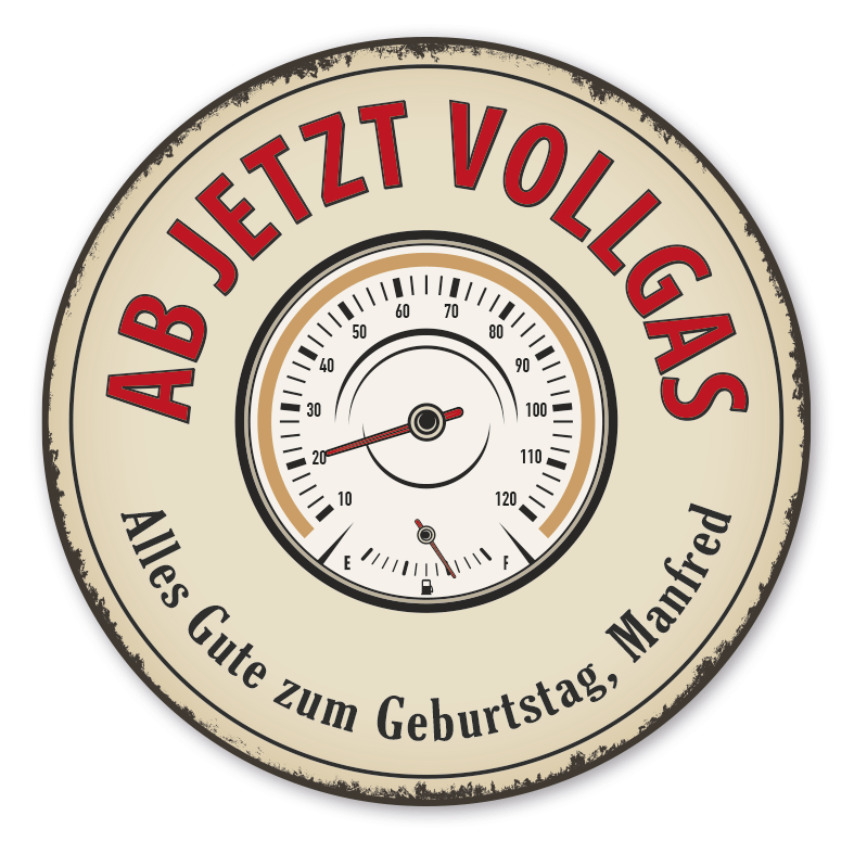 Merkmale des Retro Schildes / Geburtstagsschildes Ab jetzt Vollgas - Mit Tachometer im Retro Style - mit Ihrem Namen - VIN-1723: