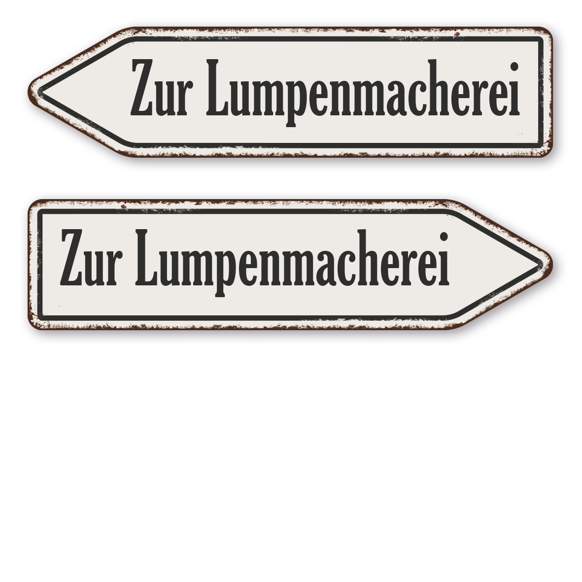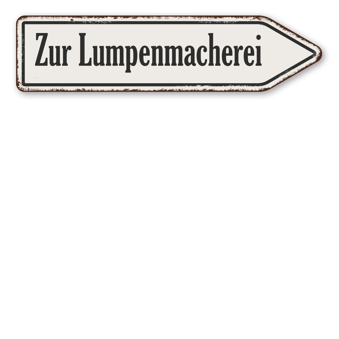 Pfeilschild / Pfeilwegweiser – Zur Lumpenmacherei - Geburtsschild Junge – Retroausführung