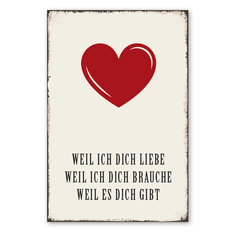 Merkmale des Retro Schildes / Vintage-Schildes Weil ich dich liebe - Weil ich dich brauche - Weil es dich gibt - VIN-1387:
