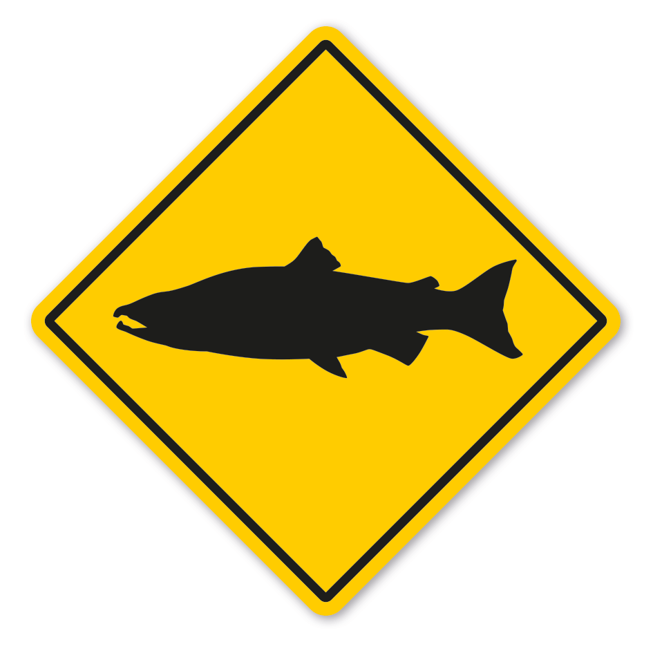 Warnschild Salmon (Lachs) crossing - mit und ohne Text