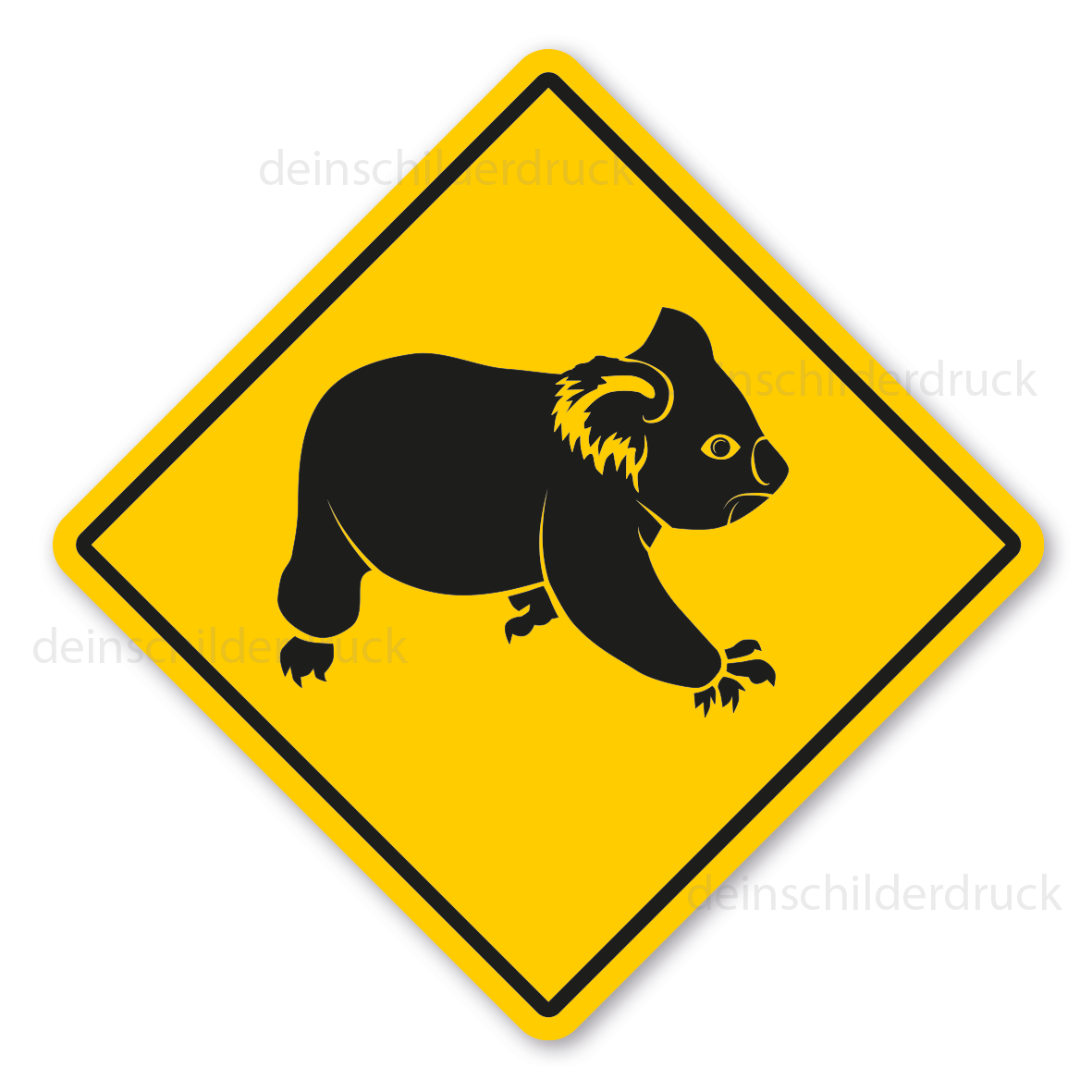 Australisches Warnschild / Verkehrsschild Achtung Koala. Unsere internationalen Schilder entsprechen grafisch den jeweiligen Originalen und sind in diversen Ausführungen und Größen erhältlich – auf Wunsch, auch mit Ihrem Wunschtext.