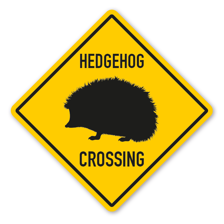 Warnschild Hedgehog (Igel) crossing - mit und ohne Text