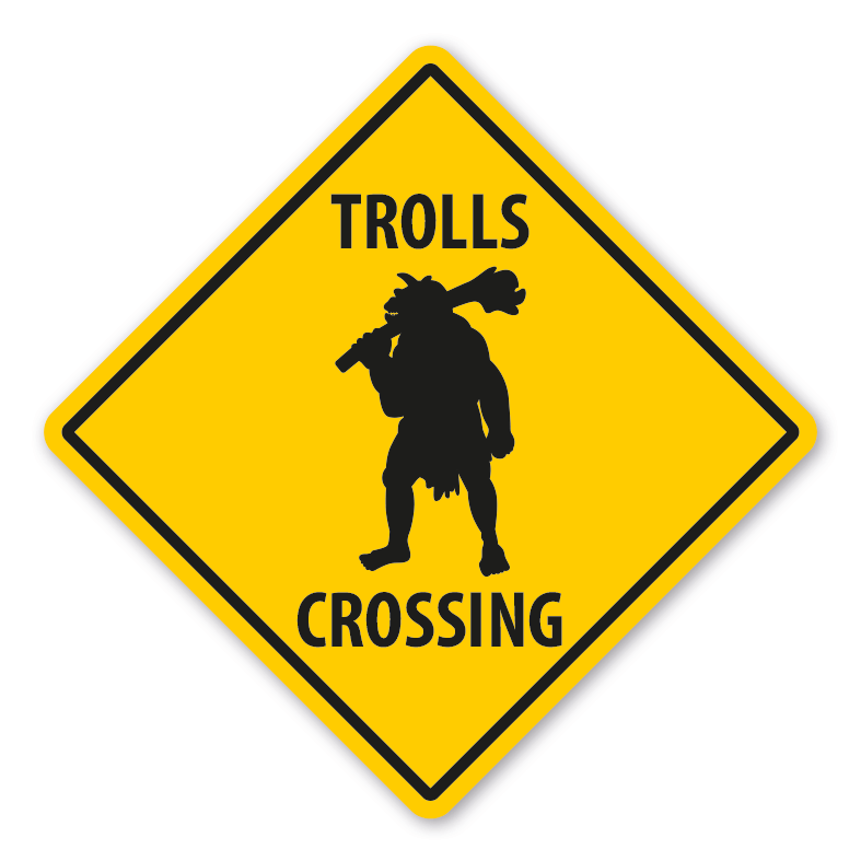 Warnschild Trolls (Trolle) crossing - mit und ohne Text