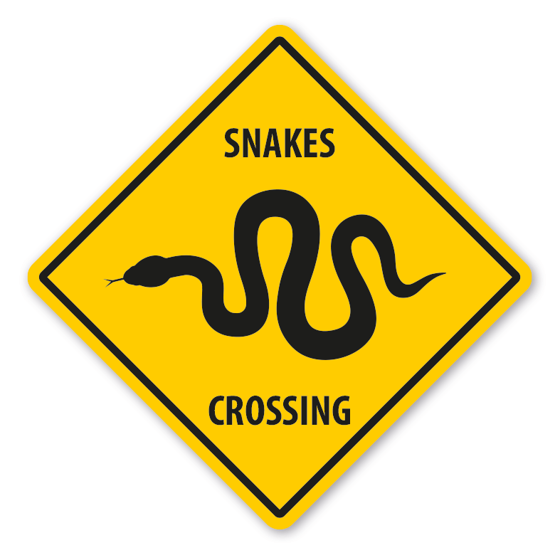 Warnschild Snakes (Schlangen) crossing - mit und ohne Text