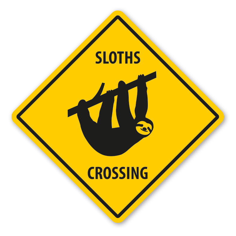 Warnschild Achtung Sloths (Faultiere) crossing - mit und ohne Text. Unsere internationalen Schilder sind in diversen Ausführungen und Größen erhältlich – auf Wunsch, auch mit Ihrem Wunschtext.