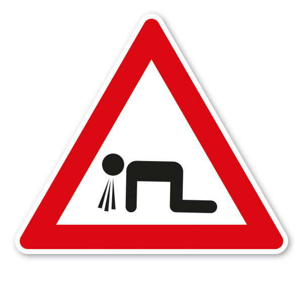 Merkmale des lustigen Verkehrsschildes / Gefahrenschildes Vorsicht - Sich erbrechende Personen unterwegs (kotzende) - kriechend – FUN-VZ-03:
