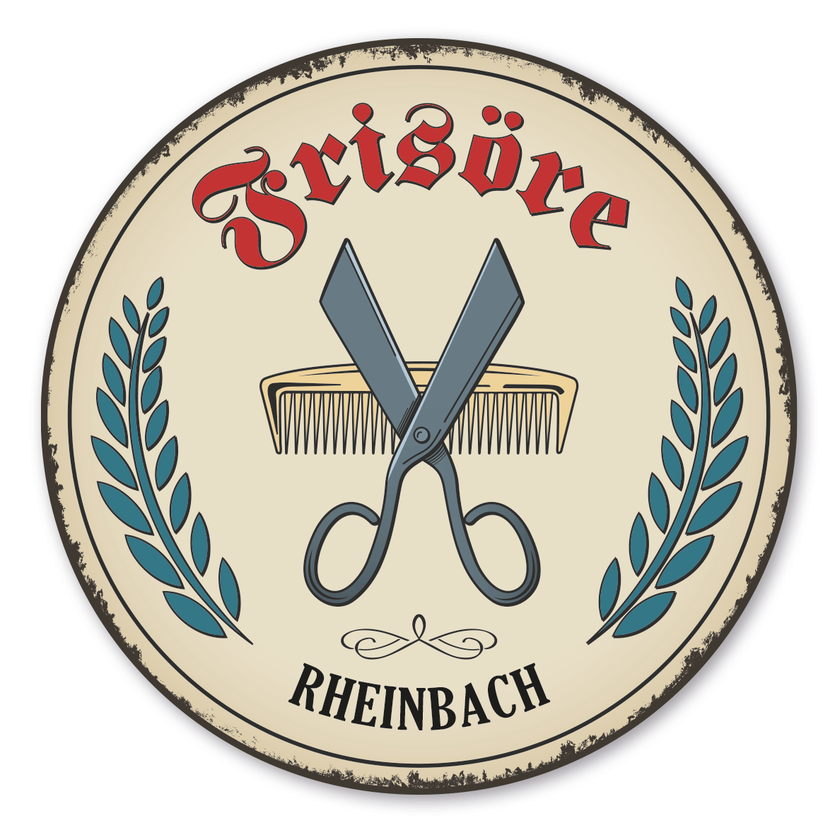 Maibaumschild / Festschild mit Zunftwappen Frisöre - mit Zunftnamen und Ihrem Ortsnamen oder Wunschtext - Rundes Wappen - Retro