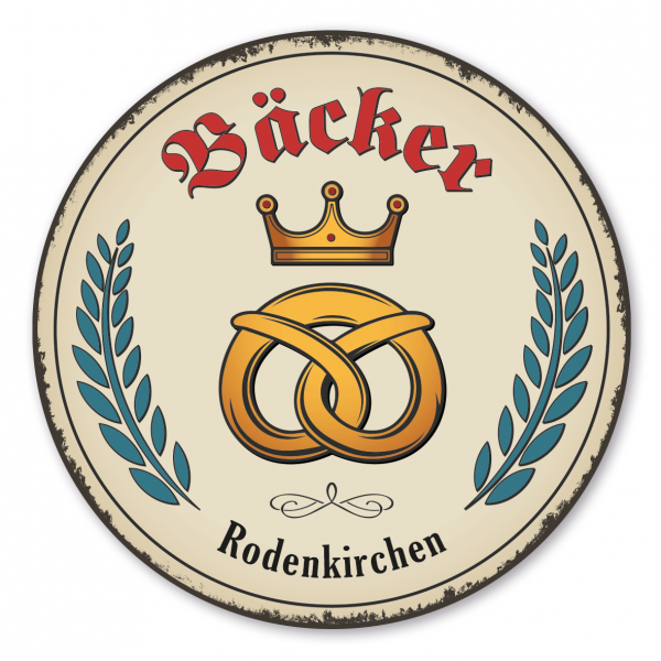 Merkmale des Maibaumschildes / Zunftwappens / Festschildes mit Zunftwappen Bäcker - mit Zunftnamen und Ihrem Ortsnamen oder Wunschtext - Rundes Wappen - Retro - MAI-VIN-15: