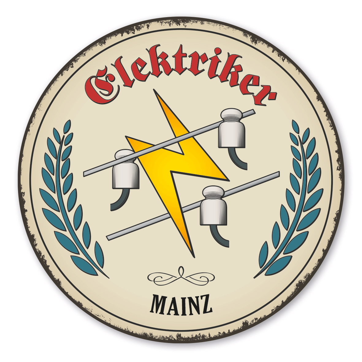 Maibaumschild / Festschild mit Zunftwappen Elektriker - mit Zunftnamen und Ihrem Ortsnamen oder Wunschtext - Rundes Wappen - Retro