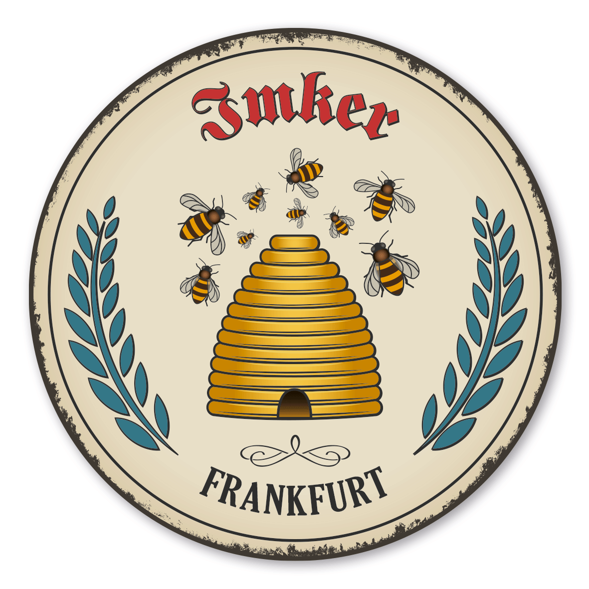 Maibaumschild / Festschild mit Zunftwappen Imker - mit Zunftnamen und Ihrem Ortsnamen oder Wunschtext - Rundes Wappen - Retro
