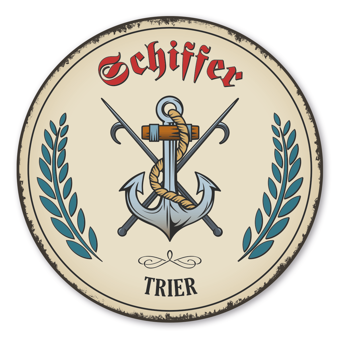 Produktinformationen "Maibaumschild / Festschild mit Zunftwappen Schiffer - mit Zunftnamen und Ihrem Ortsnamen oder Wunschtext - Rundes Wappen - Retro"
