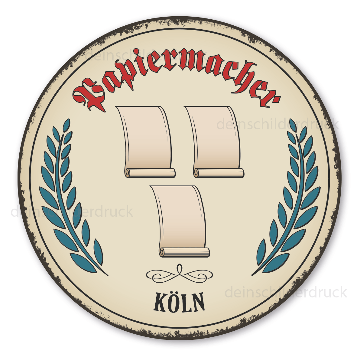 Maibaumschild / Festschild mit Zunftwappen Papiermacher - mit Zunftnamen und Ihrem Ortsnamen oder Wunschtext - Rundes Wappen - Retro