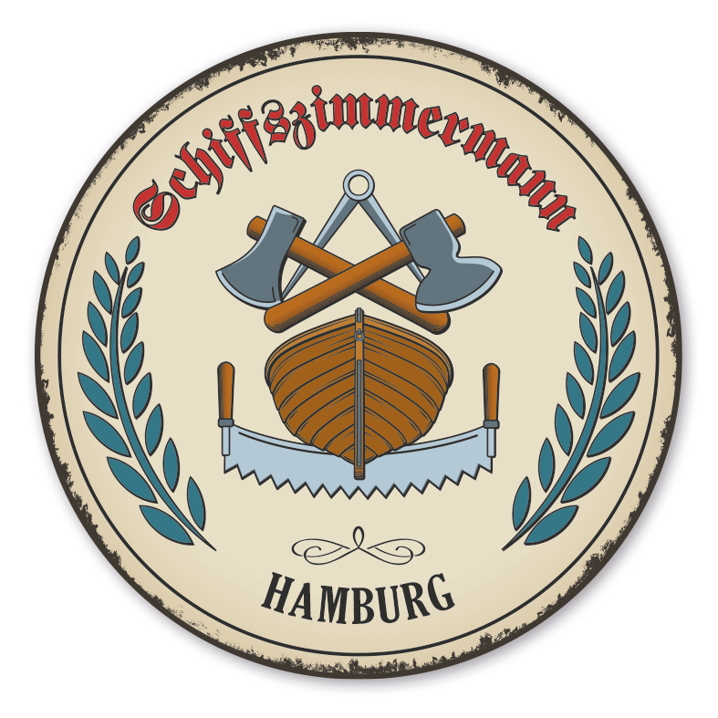 Maibaumschild / Zunftschild / Festschild mit Zunftwappen Schiffszimmermann - mit Zunftnamen und Ihrem Ortsnamen oder Wunschtext in Retroausführung. Unsere Maibaumschilder und Zunftwappen sind in Ihrer Symbolik mittelalterlichen oder neueren Ausführungen der Zunftzeichen einzelner Handwerksgilden nachempfunden. Da die Handwerkswappen der einzelnen Berufsstände je nach Stadt, Land oder Zeitepoche stark variieren können, haben wir uns bei der grafischen Umsetzung auf allgemein gebräuchliche Abbildungen der Werkzeuge und Werkzeugzusammenstellungen konzentriert. Weiterhin wurden einzelne Zunftzeichen um neuere Symbole oder Werkzeuge ergänzt, um auch neuzeitlichen Berufen gerecht zu werden. Unsere Maibaumschilder und Festschilder zur Brauchtumspflege aus deutscher Fertigung sind langlebig, außerordentlich stabil und somit wahre Schmückstücke für jeden Maibaum und andere Verwendungen.