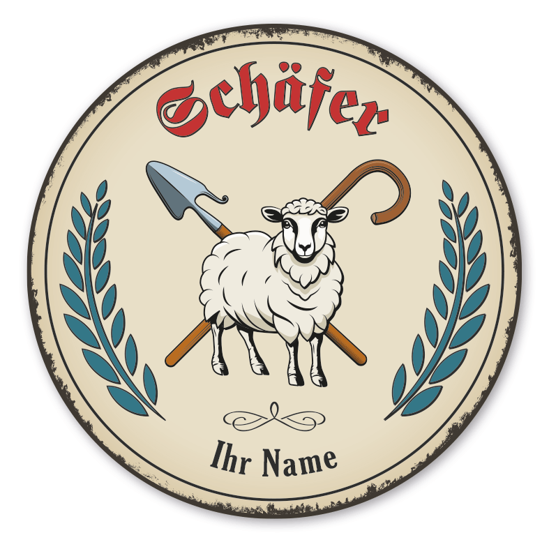 Maibaumschild / Festschild mit Zunftwappen Schäfer - Schafhirte - mit Zunftnamen, Ihrem Ortsnamen oder Wunschtext - Rundes Wappen - Retro