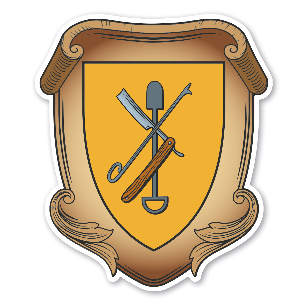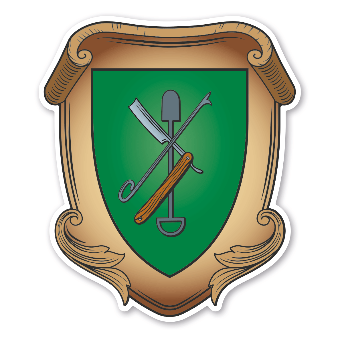 Maibaumschild / Zunftschild Barbier. Unsere Maibaumschilder und Zunftwappen sind in Ihrer Symbolik mittelalterlichen oder neueren Ausführungen der Zunftzeichen einzelner Handwerksgilden nachempfunden. Da die Handwerkswappen der einzelnen Berufsstände je nach Stadt, Land oder Zeitepoche stark variieren können, haben wir uns bei der grafischen Umsetzung auf allgemein gebräuchliche Abbildungen der Werkzeuge und Werkzeugzusammenstellungen konzentriert. Weiterhin wurden einzelne Zunftzeichen um neuere Symbole oder Werkzeuge ergänzt, um auch neuzeitlichen Berufen gerecht zu werden. Unsere Maibaumschilder zur Brauchtumspflege aus deutscher Fertigung sind langlebig, außerordentlich stabil und somit wahre Schmückstücke für jeden Maibaum.