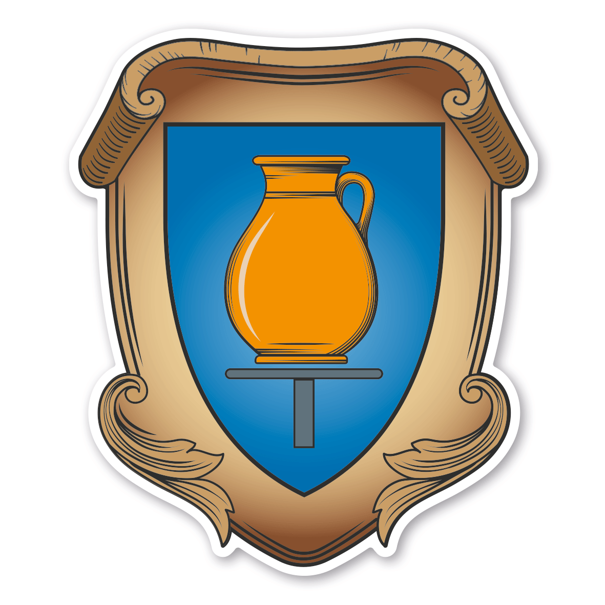 Maibaumschild / Zunftschild Töpfer. Unsere Maibaumschilder und Zunftwappen sind in Ihrer Symbolik mittelalterlichen oder neueren Ausführungen der Zunftzeichen einzelner Handwerksgilden nachempfunden. Da die Handwerkswappen der einzelnen Berufsstände je nach Stadt, Land oder Zeitepoche stark variieren können, haben wir uns bei der grafischen Umsetzung auf allgemein gebräuchliche Abbildungen der Werkzeuge und Werkzeugzusammenstellungen konzentriert. Weiterhin wurden einzelne Zunftzeichen um neuere Symbole oder Werkzeuge ergänzt, um auch neuzeitlichen Berufen gerecht zu werden. Unsere Maibaumschilder zur Brauchtumspflege aus deutscher Fertigung sind langlebig, außerordentlich stabil und somit wahre Schmückstücke für jeden Maibaum.