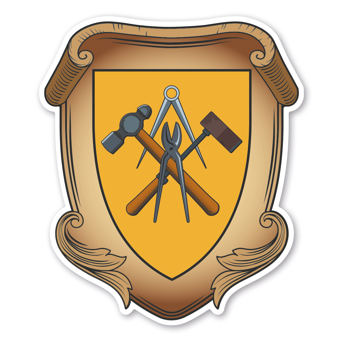 Maibaumschild / Zunftschild Spengler - Klempner. Unsere Maibaumschilder und Zunftwappen sind in Ihrer Symbolik mittelalterlichen oder neueren Ausführungen der Zunftzeichen einzelner Handwerksgilden nachempfunden. Da die Handwerkswappen der einzelnen Berufsstände je nach Stadt, Land oder Zeitepoche stark variieren können, haben wir uns bei der grafischen Umsetzung auf allgemein gebräuchliche Abbildungen der Werkzeuge und Werkzeugzusammenstellungen konzentriert. Weiterhin wurden einzelne Zunftzeichen um neuere Symbole oder Werkzeuge ergänzt, um auch neuzeitlichen Berufen gerecht zu werden. Unsere Maibaumschilder zur Brauchtumspflege aus deutscher Fertigung sind langlebig, außerordentlich stabil und somit wahre Schmückstücke für jeden Maibaum.