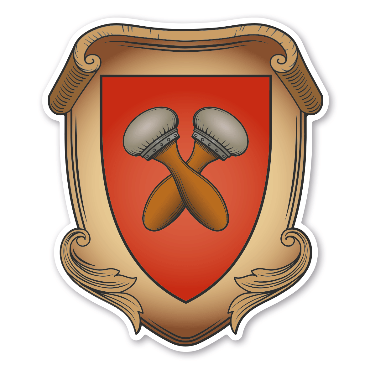 Maibaumschild / Zunftschild Maler. Unsere Maibaumschilder und Zunftwappen sind in Ihrer Symbolik mittelalterlichen oder neueren Ausführungen der Zunftzeichen einzelner Handwerksgilden nachempfunden. Da die Handwerkswappen der einzelnen Berufsstände je nach Stadt, Land oder Zeitepoche stark variieren können, haben wir uns bei der grafischen Umsetzung auf allgemein gebräuchliche Abbildungen der Werkzeuge und Werkzeugzusammenstellungen konzentriert. Weiterhin wurden einzelne Zunftzeichen um neuere Symbole oder Werkzeuge ergänzt, um auch neuzeitlichen Berufen gerecht zu werden.  Unsere Maibaumschilder zur Brauchtumspflege aus deutscher Fertigung sind langlebig, außerordentlich stabil und somit wahre Schmückstücke für jeden Maibaum.      Merkmale des Maibaumschildes / Zunftwappens mit dem Zunftzeichen der Maler - Wappen A - MAI-A-06:  Ausführung: Wappenform A  Druck: hochwertiger, einseitiger Digitaldruck in vier Farbvarianten mit anschließender UV/Antigraffiti-Schutzlackierung   Material:  Aluverbund, Stärke 3 mm  Abmessungen (Höhe x Breite):   350 x 300 mm  400 x 343 mm  500 x 428 mm  600 x 515 mm   700 x 600 mm   800 x 686 mm   Verarbeitung: formgefräst mit weißem Rand gemäß der Artikelabbildung  Verpackungseinheiten: 1 Maibaumschild  Bitte beachten Sie: Maibaumschilder in der Höhe wirken deutlich kleiner als Schilder, die direkt vor Ihnen liegen. Entscheiden Sie sich lieber für ein größeres Schilderformat – insbesondere, wenn Ihr Wunschschild auch Textinhalte besitzt – damit die Inhalte gut zu erkennen sind.  Bei individuellen Maibaumschildern gilt die angegebene Lieferzeit erst nach erfolgter Druckfreigabe. Unsere Maibaumschilder werden sowohl in der Standardausführung als auch individualisiert, sofern vorgesehen, nur bestellbezogen produziert und sind somit grundsätzlich vom Rückgaberecht ausgeschlossen.   Da die Befestigungen für Maibaumschilder zu individuell sind und meistens maßgefertigt von Schlossern und ähnlichen Berufsgruppen produziert werden, können wir diese nicht anbieten.