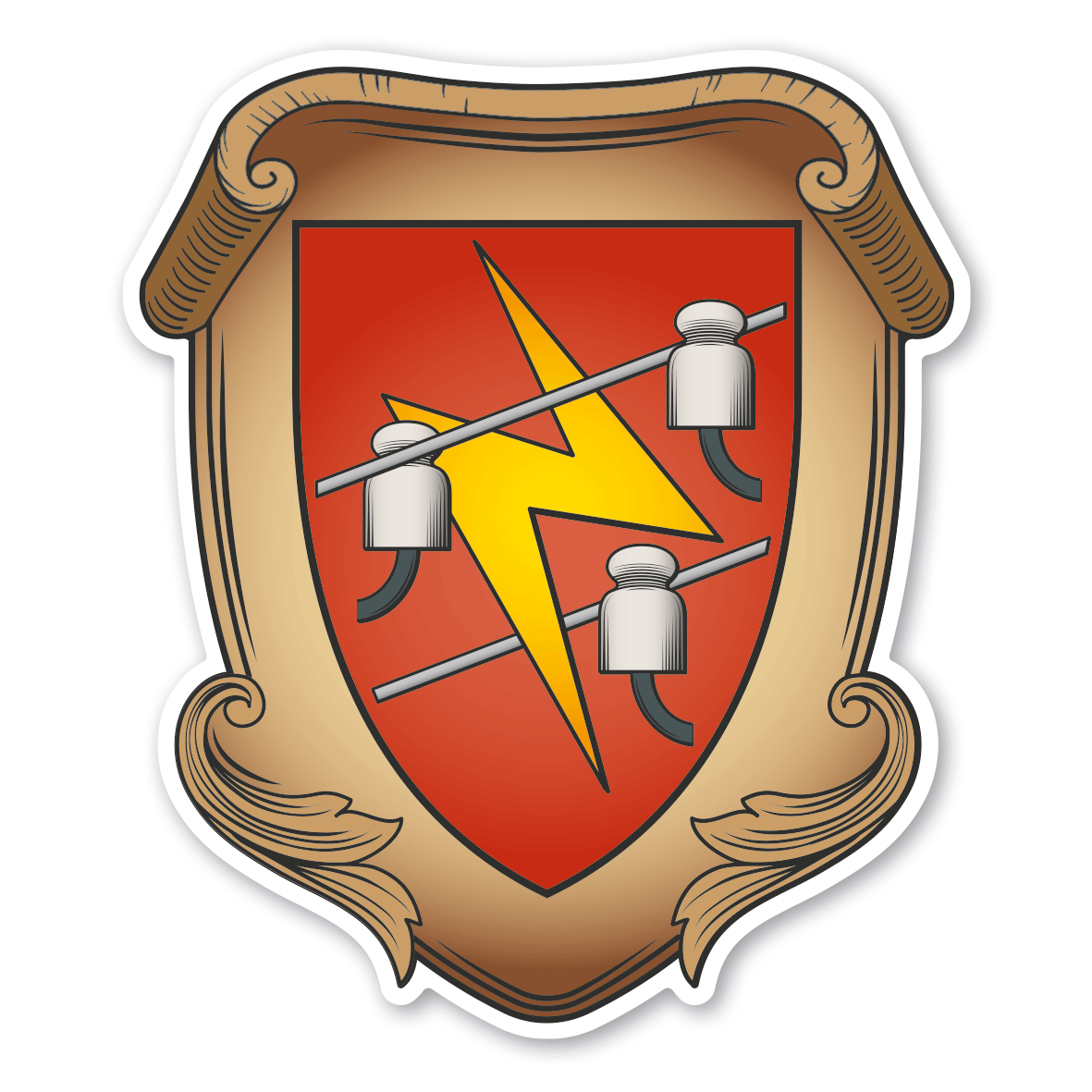Maibaumschild / Zunftschild Elektriker. Unsere Maibaumschilder und Zunftwappen sind in Ihrer Symbolik mittelalterlichen oder neueren Ausführungen der Zunftzeichen einzelner Handwerksgilden nachempfunden. Da die Handwerkswappen der einzelnen Berufsstände je nach Stadt, Land oder Zeitepoche stark variieren können, haben wir uns bei der grafischen Umsetzung auf allgemein gebräuchliche Abbildungen der Werkzeuge und Werkzeugzusammenstellungen konzentriert. Weiterhin wurden einzelne Zunftzeichen um neuere Symbole oder Werkzeuge ergänzt, um auch neuzeitlichen Berufen gerecht zu werden. Unsere Maibaumschilder zur Brauchtumspflege aus deutscher Fertigung sind langlebig, außerordentlich stabil und somit wahre Schmückstücke für jeden Maibaum.