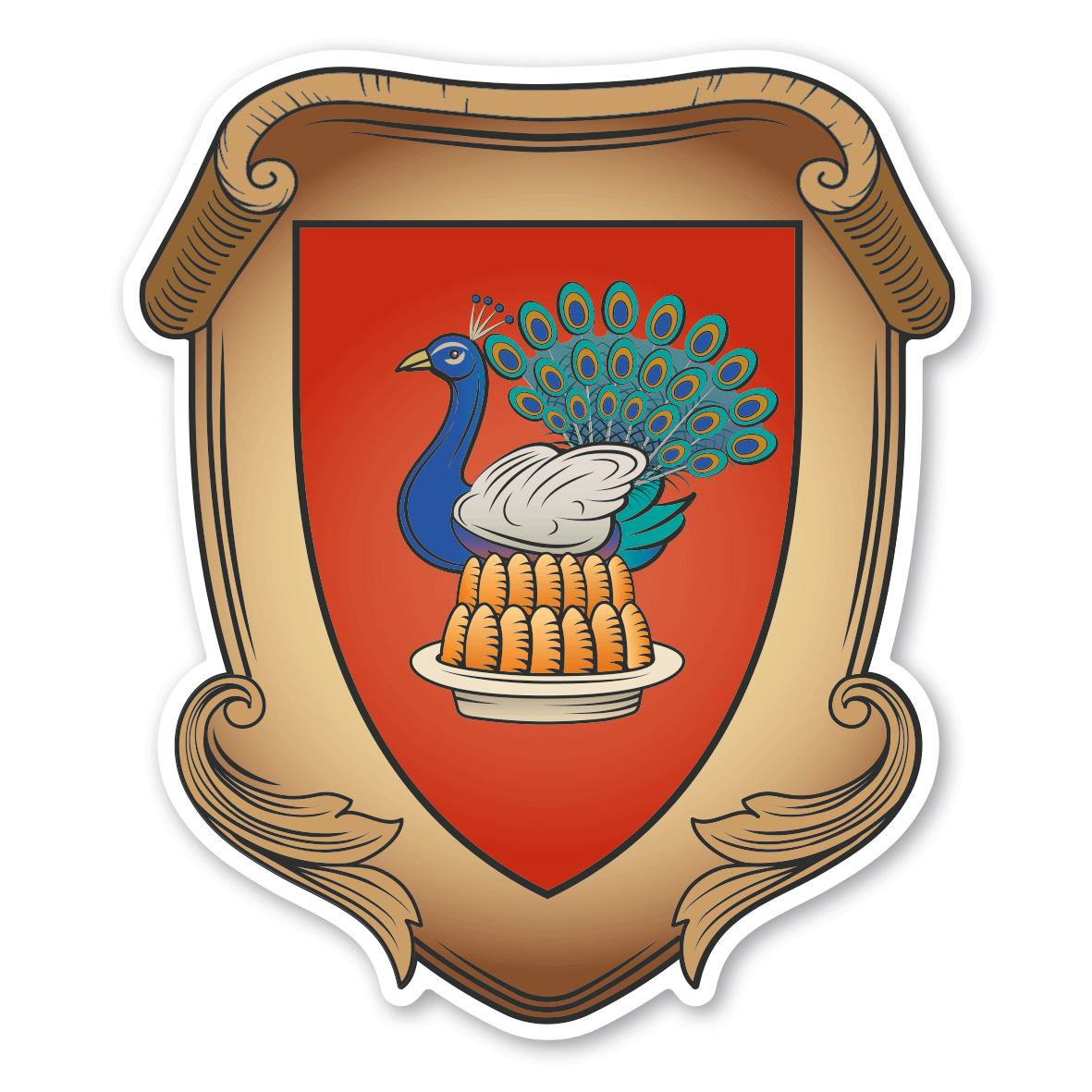 Maibaumschild / Zunftschild Koch - mit Pfau. Unsere Maibaumschilder und Zunftwappen sind in Ihrer Symbolik mittelalterlichen oder neueren Ausführungen der Zunftzeichen einzelner Handwerksgilden nachempfunden. Da die Handwerkswappen der einzelnen Berufsstände je nach Stadt, Land oder Zeitepoche stark variieren können, haben wir uns bei der grafischen Umsetzung auf allgemein gebräuchliche Abbildungen der Werkzeuge und Werkzeugzusammenstellungen konzentriert. Weiterhin wurden einzelne Zunftzeichen um neuere Symbole oder Werkzeuge ergänzt, um auch neuzeitlichen Berufen gerecht zu werden. Unsere Maibaumschilder zur Brauchtumspflege aus deutscher Fertigung sind langlebig, außerordentlich stabil und somit wahre Schmückstücke für jeden Maibaum.
