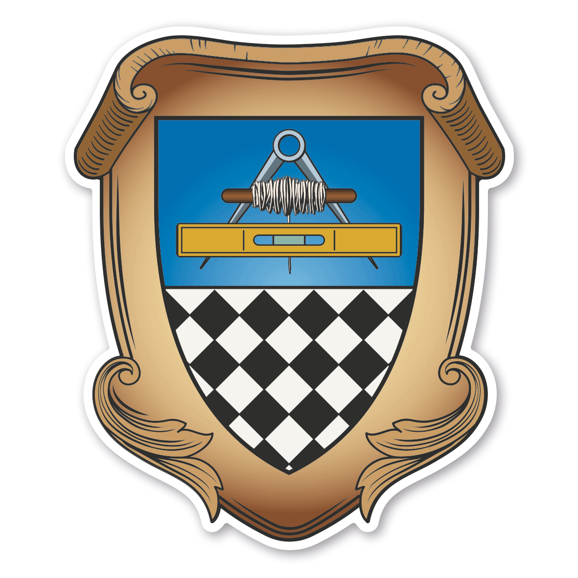 Maibaumschild / Zunftschild Fliesenleger. Unsere Maibaumschilder und Zunftwappen sind in Ihrer Symbolik mittelalterlichen oder neueren Ausführungen der Zunftzeichen einzelner Handwerksgilden nachempfunden. Da die Handwerkswappen der einzelnen Berufsstände je nach Stadt, Land oder Zeitepoche stark variieren können, haben wir uns bei der grafischen Umsetzung auf allgemein gebräuchliche Abbildungen der Werkzeuge, Werkzeugzusammenstellungen und anderer Elemente konzentriert. Weiterhin wurden einzelne Zunftzeichen um neuere Symbole oder Werkzeuge ergänzt, um auch neuzeitlichen Berufen gerecht zu werden. Unsere Maibaumschilder zur Brauchtumspflege aus deutscher Fertigung sind langlebig, außerordentlich stabil und somit wahre Schmückstücke für jeden Maibaum.