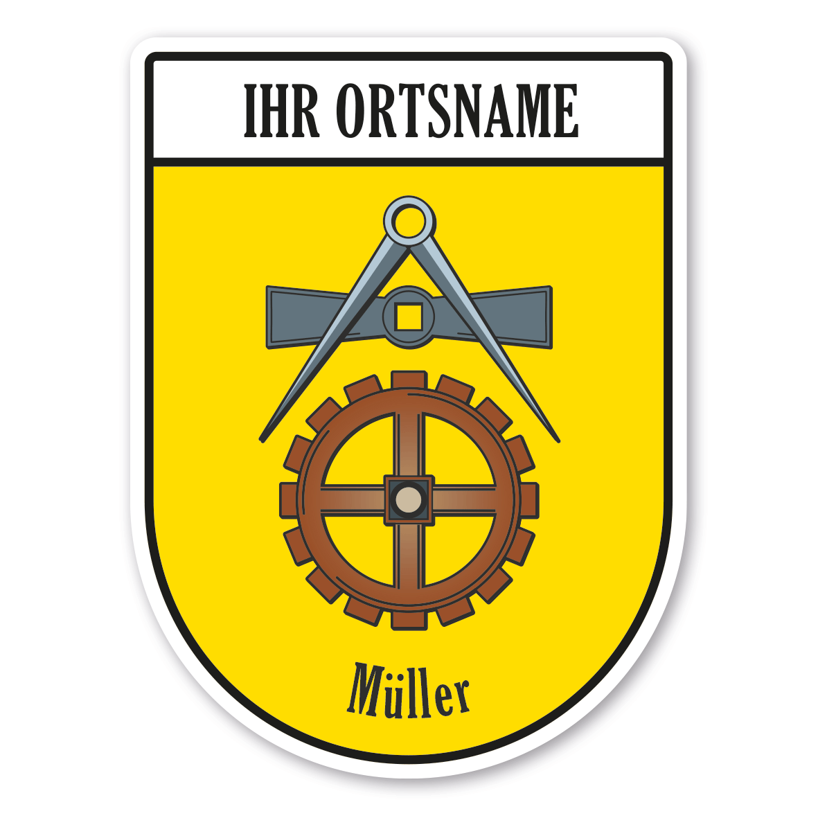 Maibaumschild / Zunftwappen Müller - Mühle mit Zunftnamen, Ortsnamen oder Ihrem Wunschtext - Wappen BL