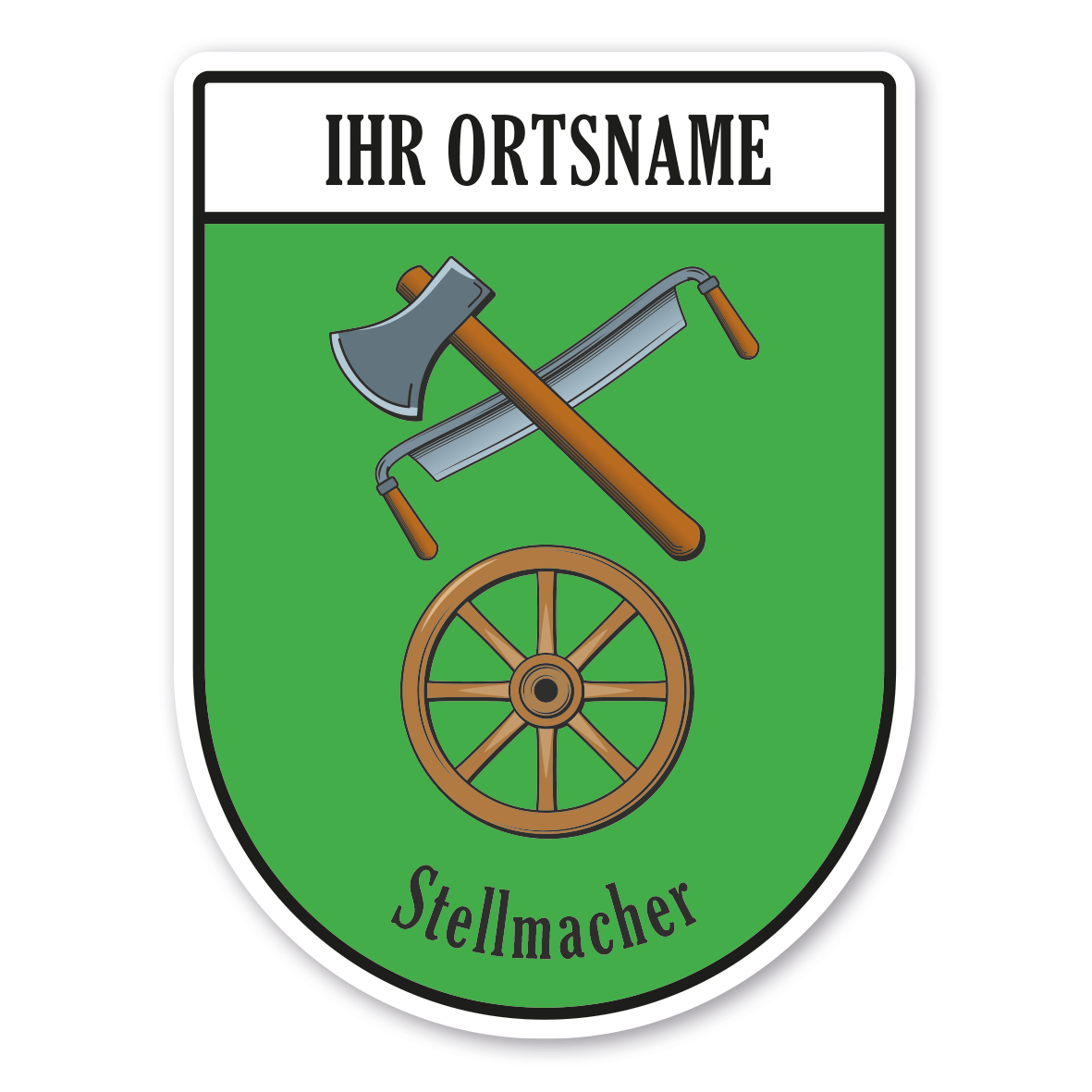 Maibaumschild / Zunftwappen Stellmacher - Wagner mit Zunftnamen, Ortsnamen oder Ihrem Wunschtext - Wappen BL