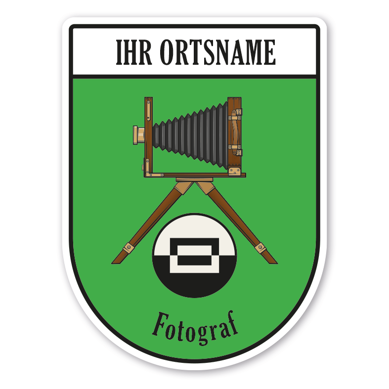 Maibaumschild Fotograf - Photograph mit Zunftnamen, Ortsnamen oder Ihrem Wunschtext. Unsere Maibaumschilder und Zunftwappen sind in Ihrer Symbolik mittelalterlichen oder neueren Ausführungen der Zunftzeichen einzelner Handwerksgilden nachempfunden. Da die Handwerkswappen der einzelnen Berufsstände je nach Stadt, Land oder Zeitepoche stark variieren können, haben wir uns bei der grafischen Umsetzung auf allgemein gebräuchliche Abbildungen der Werkzeuge und Werkzeugzusammenstellungen konzentriert. Weiterhin wurden einzelne Zunftzeichen um neuere Symbole oder Werkzeuge ergänzt, um auch neuzeitlichen Berufen gerecht zu werden. Unsere Maibaumschilder zur Brauchtumspflege aus deutscher Fertigung sind langlebig, außerordentlich stabil und somit wahre Schmückstücke für jeden Maibaum.
